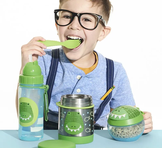 Tomatodo Skip Hop Zoo con tapa abatible y cañita, ideal para acompañar a tu pequeño en cualquier lugar. Seguro, práctico y con divertidos personajes de la colección ZOO®.