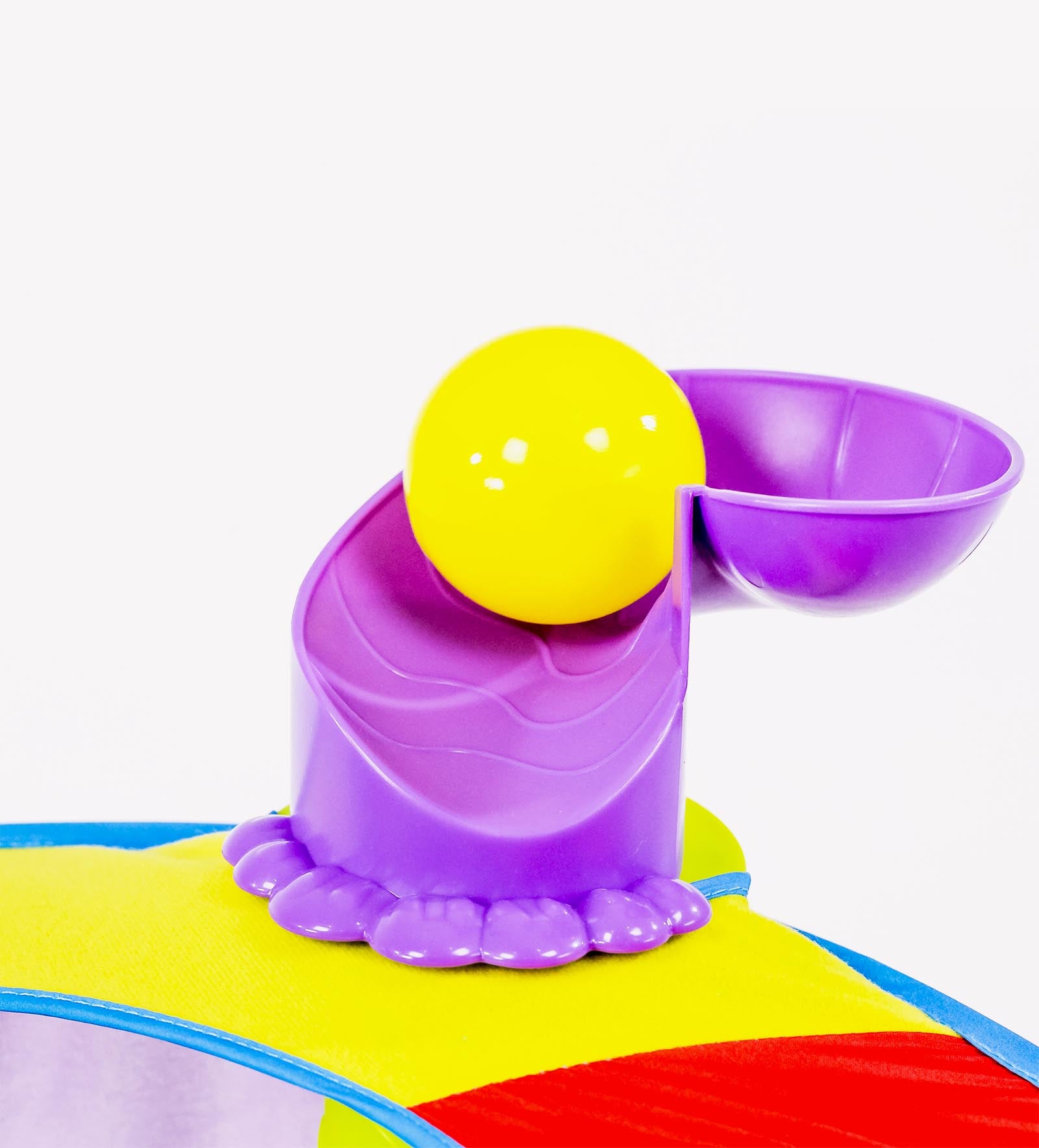 Para que el bebé haga explotar, soltar o deslizar pelotas de colores dentro, fuera, abajo y alrededor.