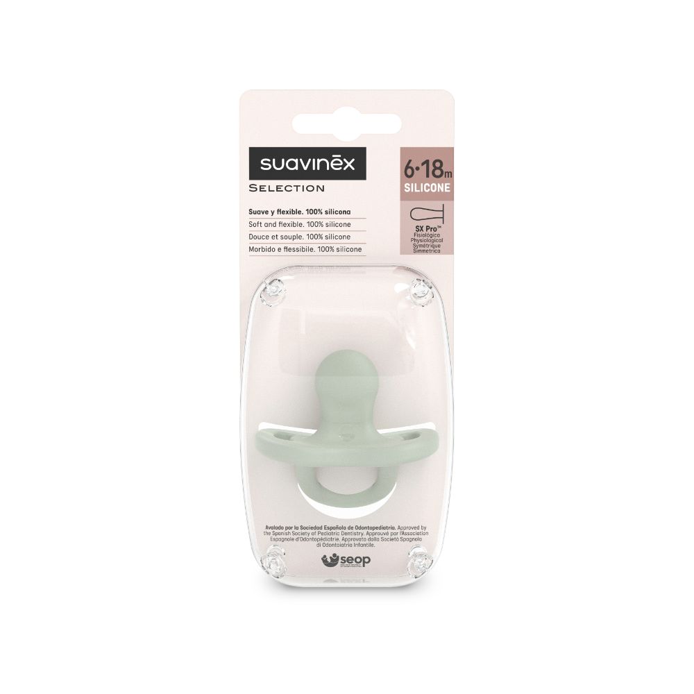 tetina fisiológica SX Pro de silicona, especialmente diseñada para respetar el desarrollo natural del paladar, lengua y encías.