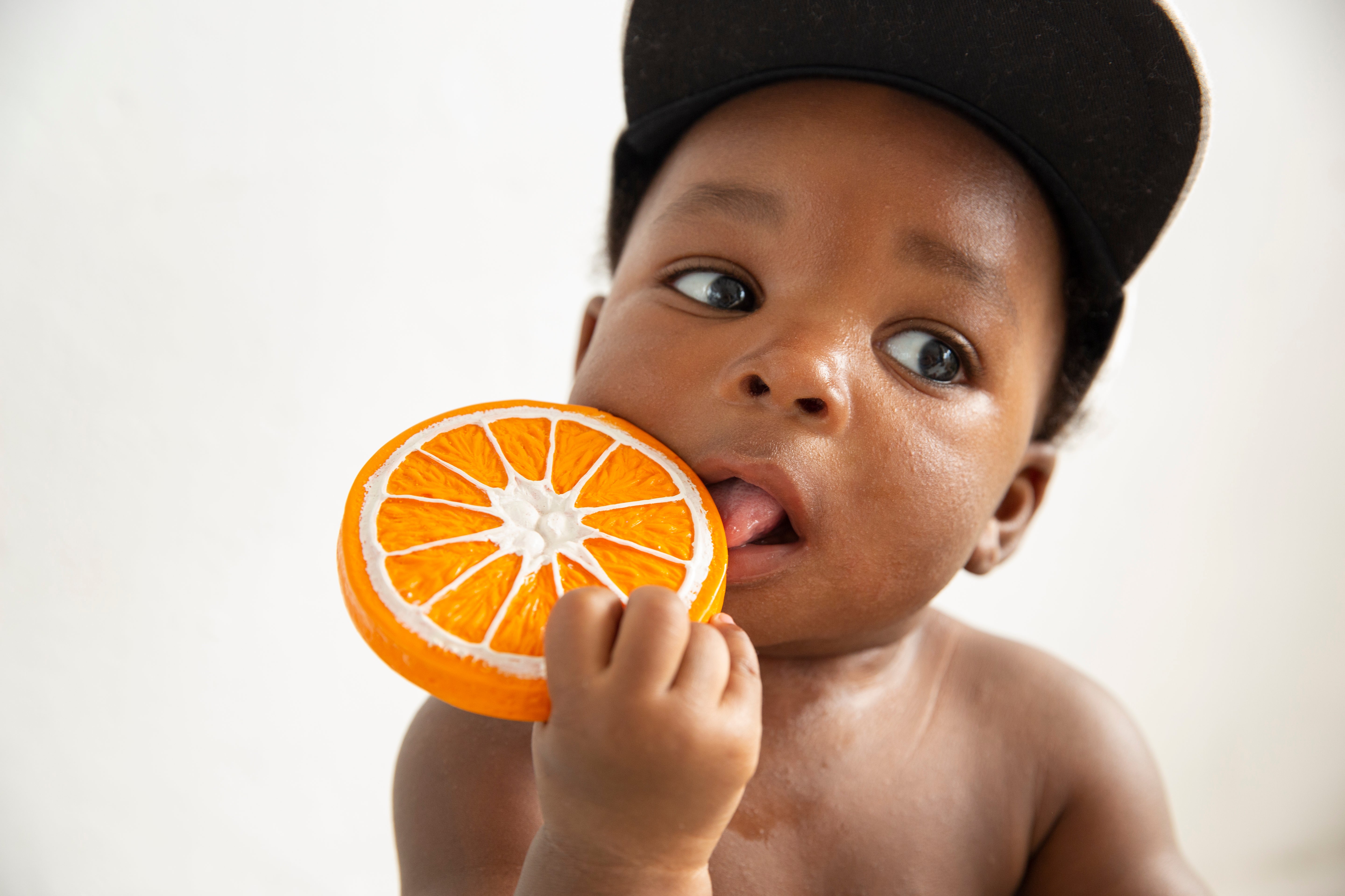 ¡Introduce a los niños en un estilo de vida saludable mientras mastican este mordedor realista!
