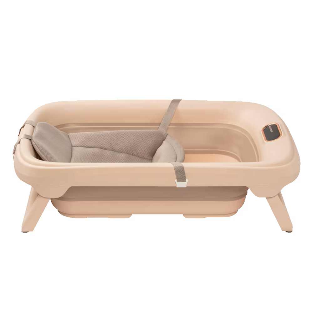 Indigo Plus es una práctica bañera plegable con hamaca para recién nacido, diseñada para acompañar el baño del bebé desde el primer día hasta los 4 años. Incluye termómetro integrado, superficie antideslizante y un diseño que facilita su uso y almacenamiento.