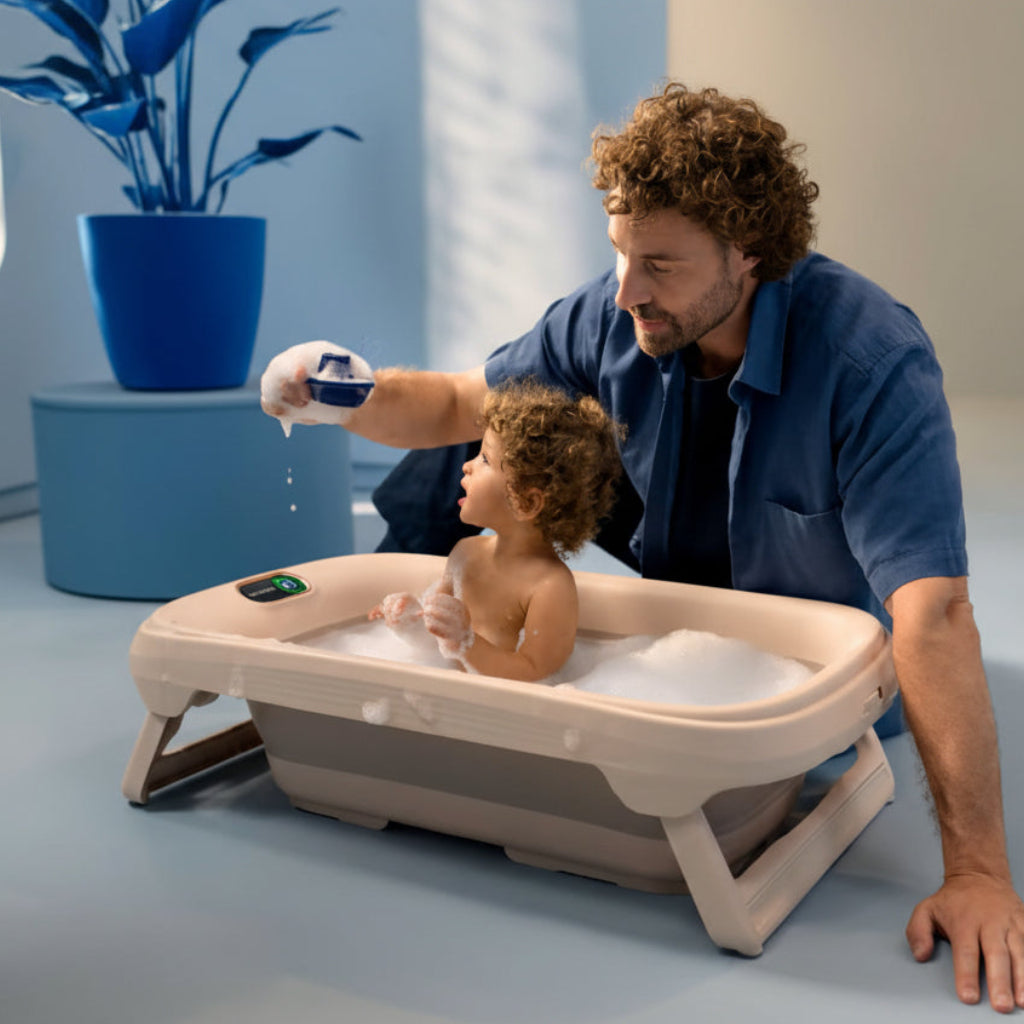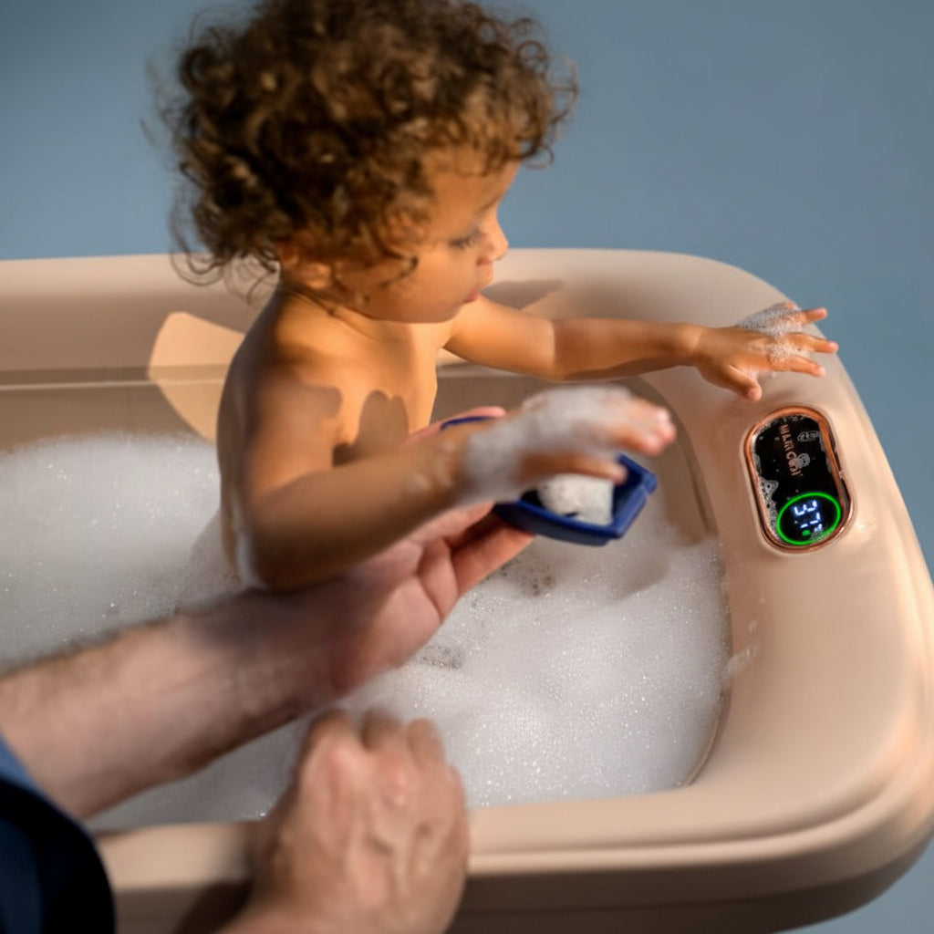 Puedes bañar al pequeño en Indigo Plus desde el primer día, gracias a la hamaca QuickDry para recién nacido, hasta los 4 años. Gracias a su diseño amplio, los padres pueden bañar fácilmente a recién nacidos y bebés. Y cuando el pequeño crezca, Indigo Plus es perfecta para niños pequeños que quieren divertirse chapoteando durante el momento del baño.