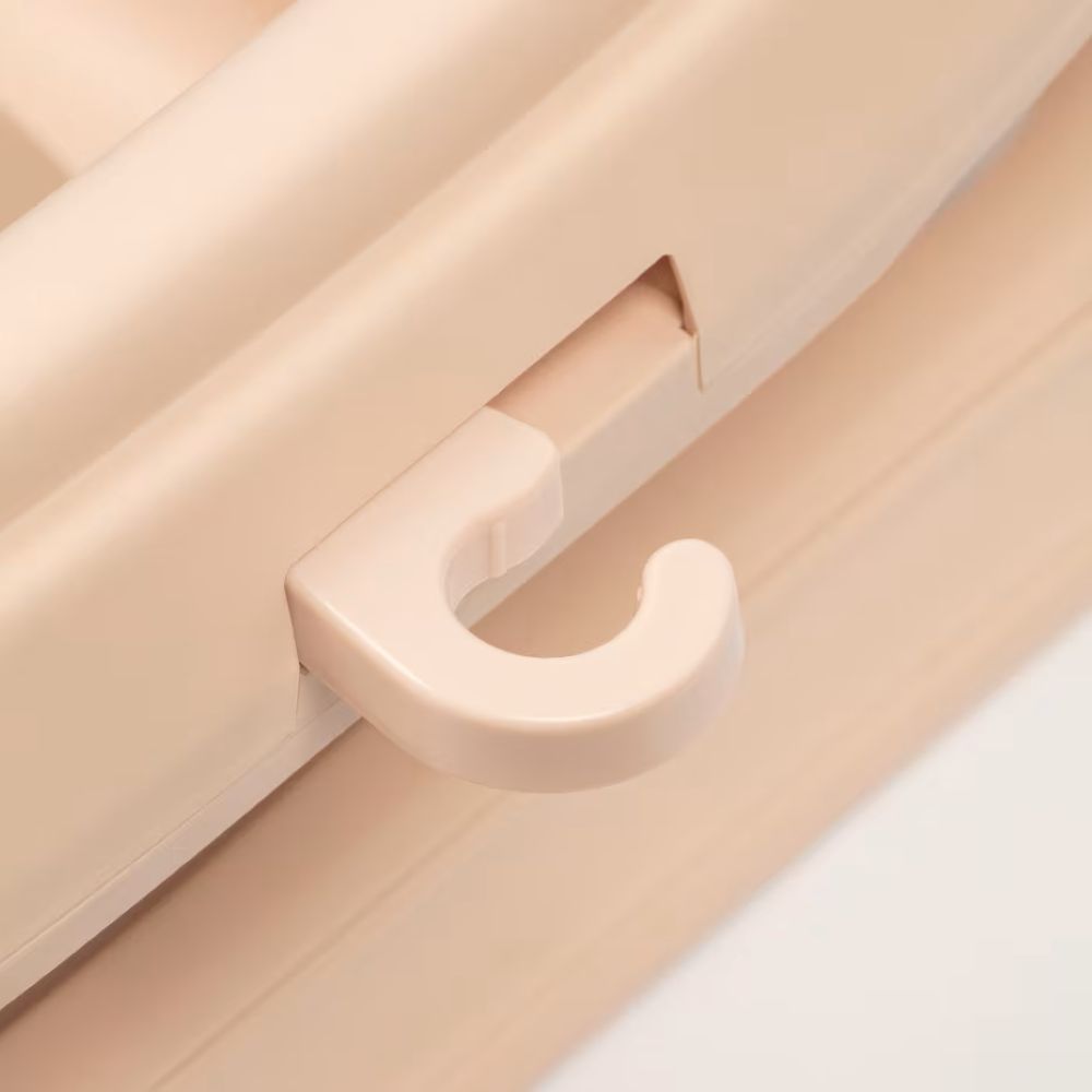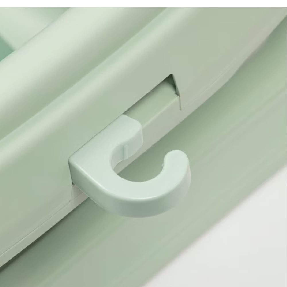 Indigo Plus facilita el momento del baño al pequeño y a ti. La bañera tiene un desagüe grande para poder vaciarla rápidamente después del baño. Puedes colgarla para secarla usando el gancho retráctil y, una vez seca, cerrarla de forma plana para guardarla fácilmente.