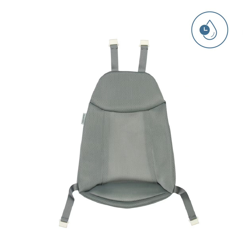 La hamaca QuickDry para recién nacido se engancha en los bordes de la bañera, ofreciendo una cómoda posición tumbada y un tejido que mantiene al bebé en contacto con el agua caliente durante todo el baño. Gracias a su característica de secado rápido, puedes volver a utilizarla el día después.