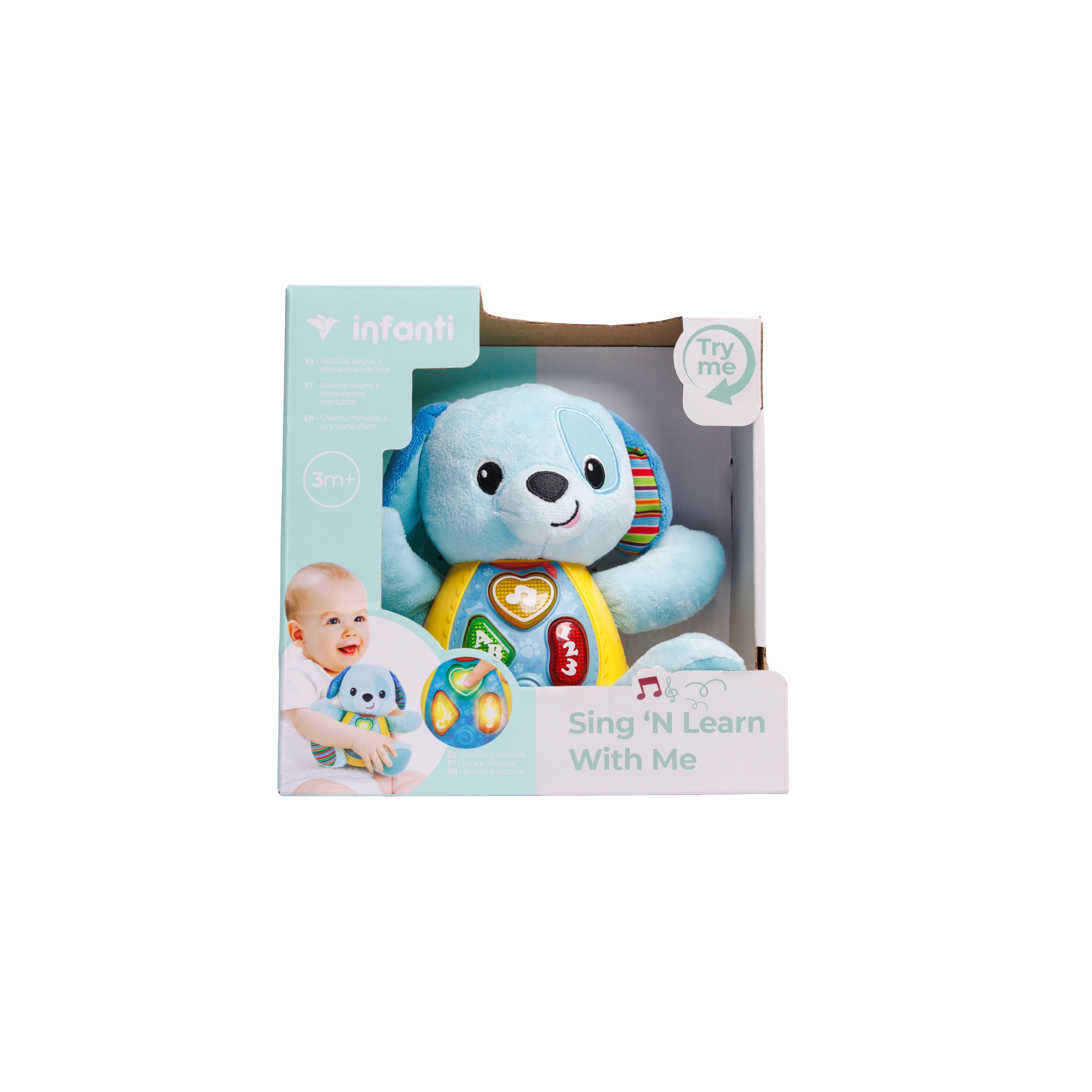 Perrito didáctico con luces, sonidos y frases que estimulan motricidad, atención y habilidades auditivas desde los primeros meses.