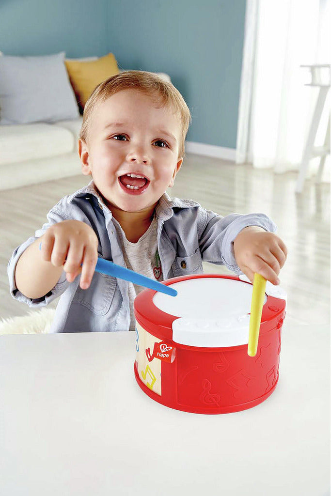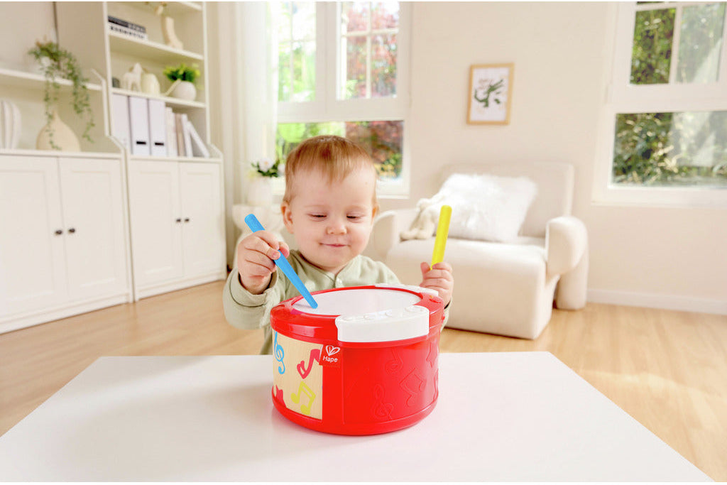 Tambor infantil con luces y ritmos básicos que introduce a los pequeños en el mundo musical desde el juego.