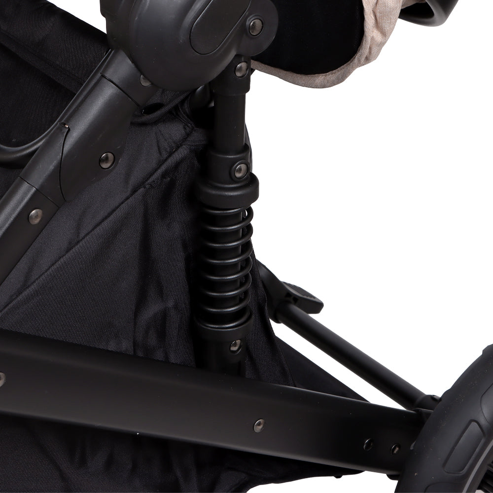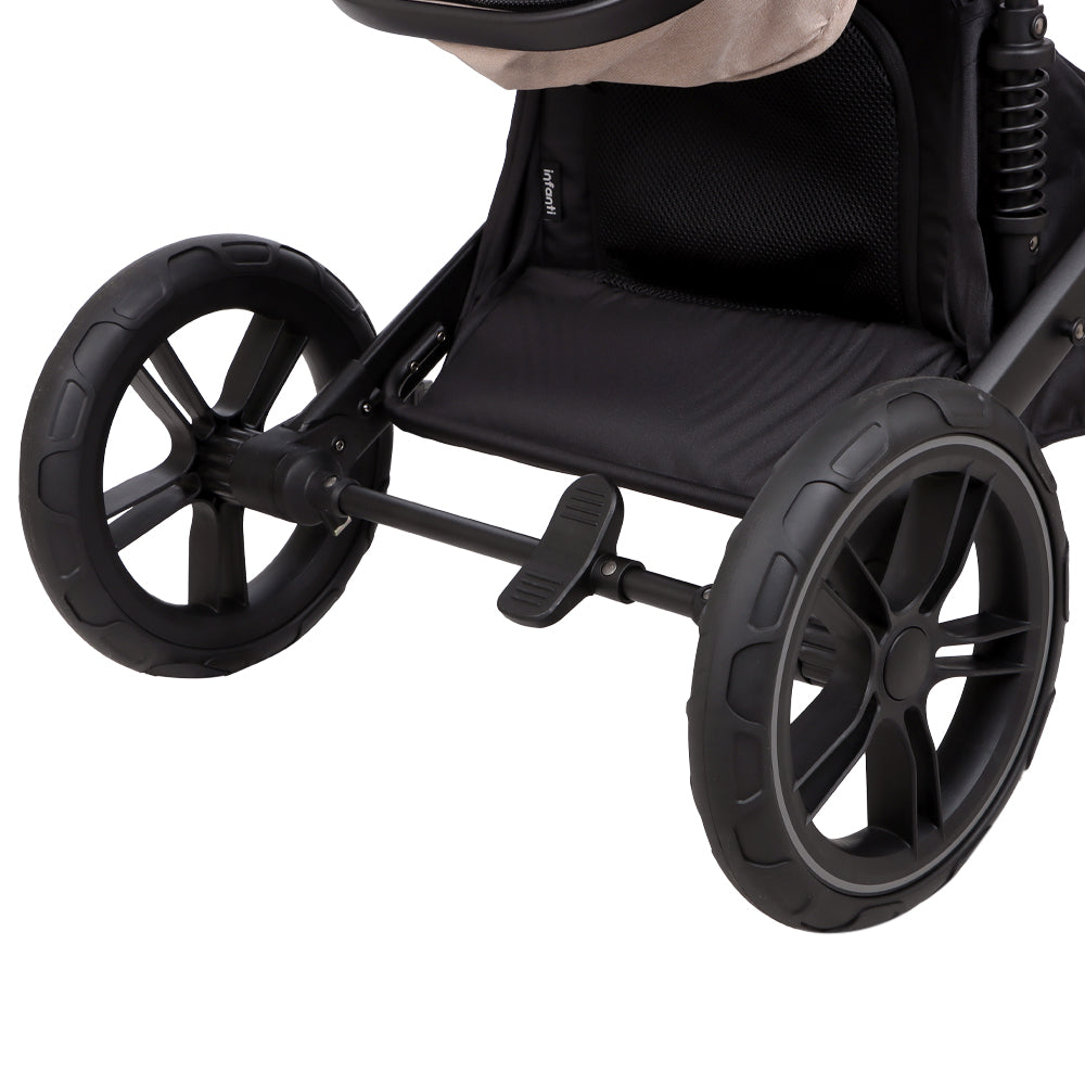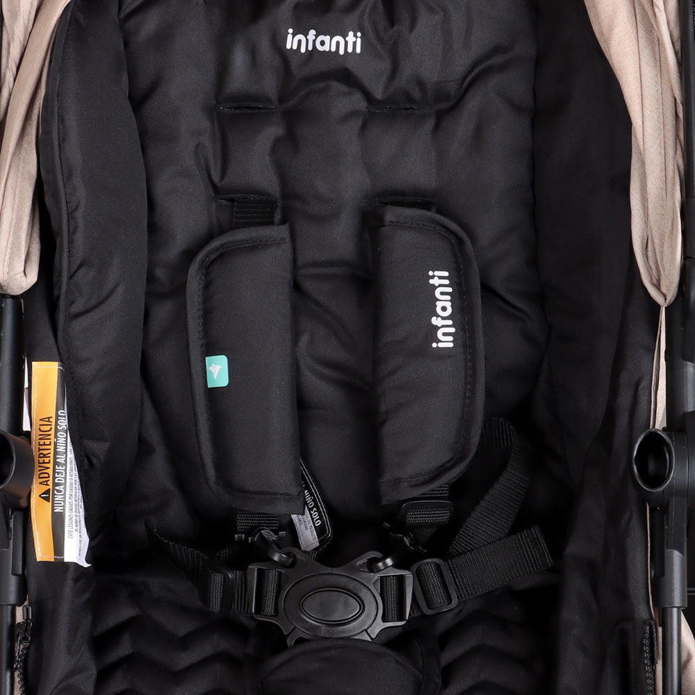 Este coche cuenta con un arnés de 5 puntos que mantiene a tu bebé seguro durante los paseos. Su barra parachoques extraíble permite mayor comodidad al sentar y retirar al niño, mientras que las ruedas EVA antideslizantes delanteras de 7” y traseras de 12” garantizan estabilidad y maniobrabilidad en todo tipo de superficies.
