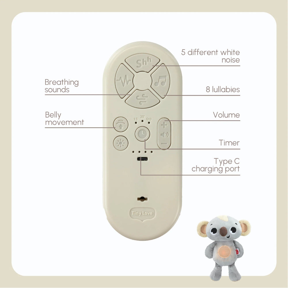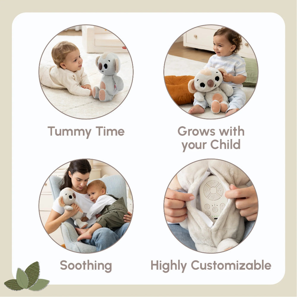 A medida que tu bebé se vuelve más consciente de su entorno, el Koala puede formar parte de la rutina para dormir. Añade luces suaves y movimientos rítmicos de respiración para crear un ambiente tranquilo que ayuda a tu pequeño a relajarse.