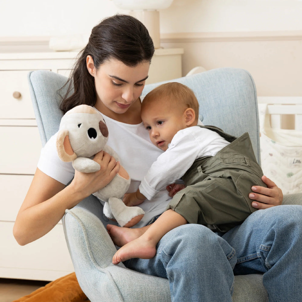 En las primeras semanas de vida, tu bebé se adapta al mundo fuera del vientre materno. Coloca el Koala cerca de tu recién nacido y déjale escuchar los relajantes sonidos de respiración, el ruido blanco y los ritmos familiares que evocan lo que vivió en el útero. Esto facilitará la transición al mundo exterior y proporcionará confort.