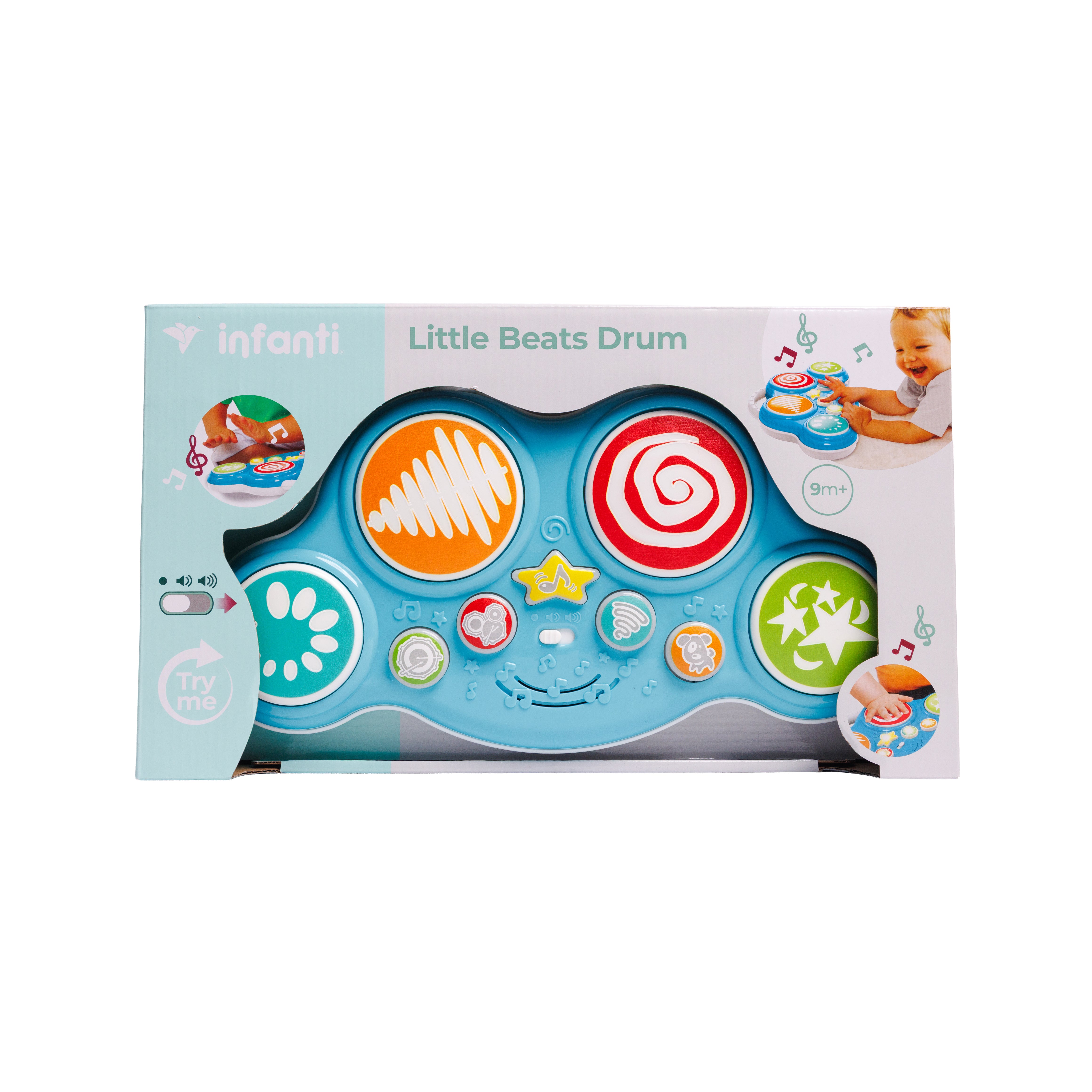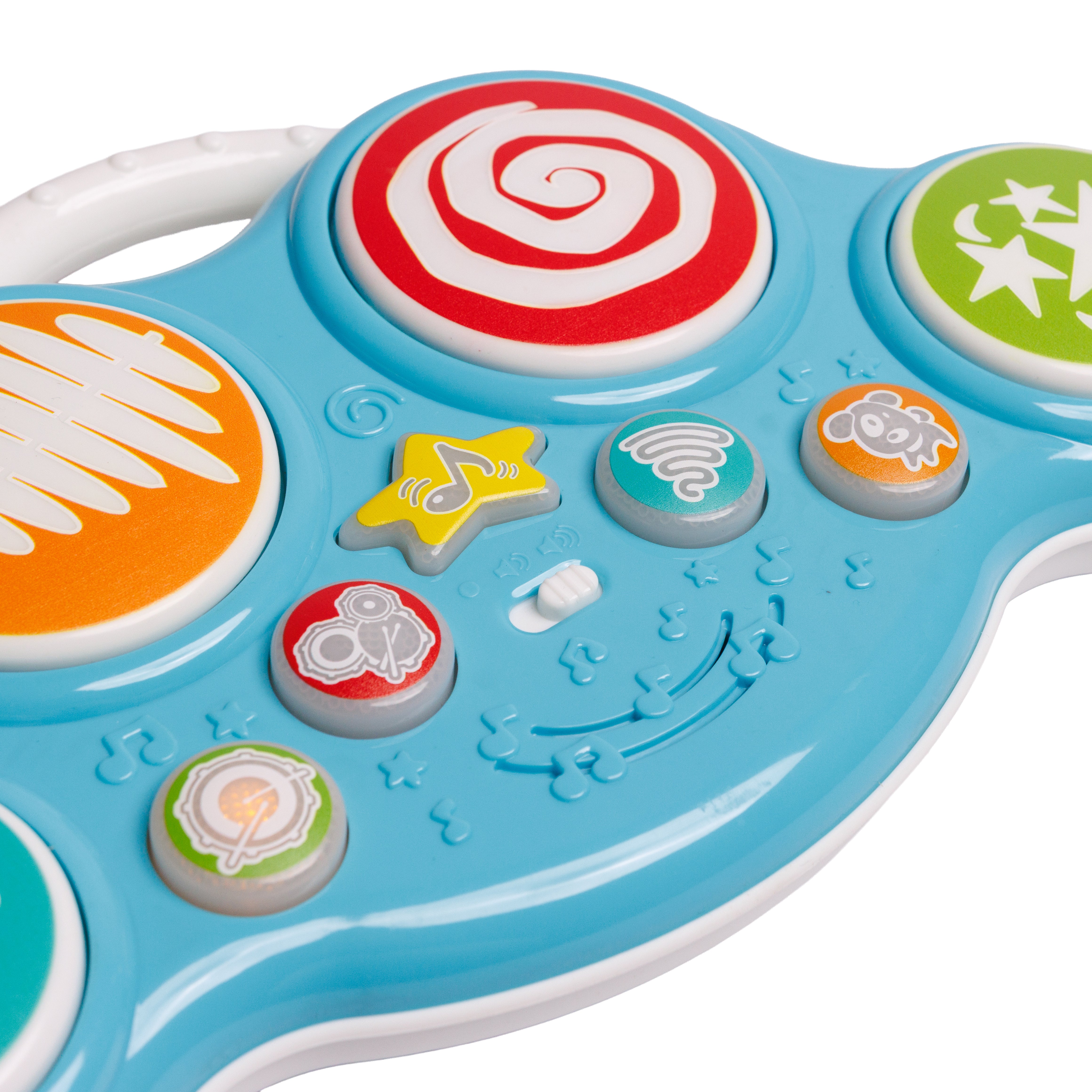 Tambor infantil con almohadillas de colores, luces, ritmos y efectos que estimulan oído, coordinación y creatividad desde los 9 meses.