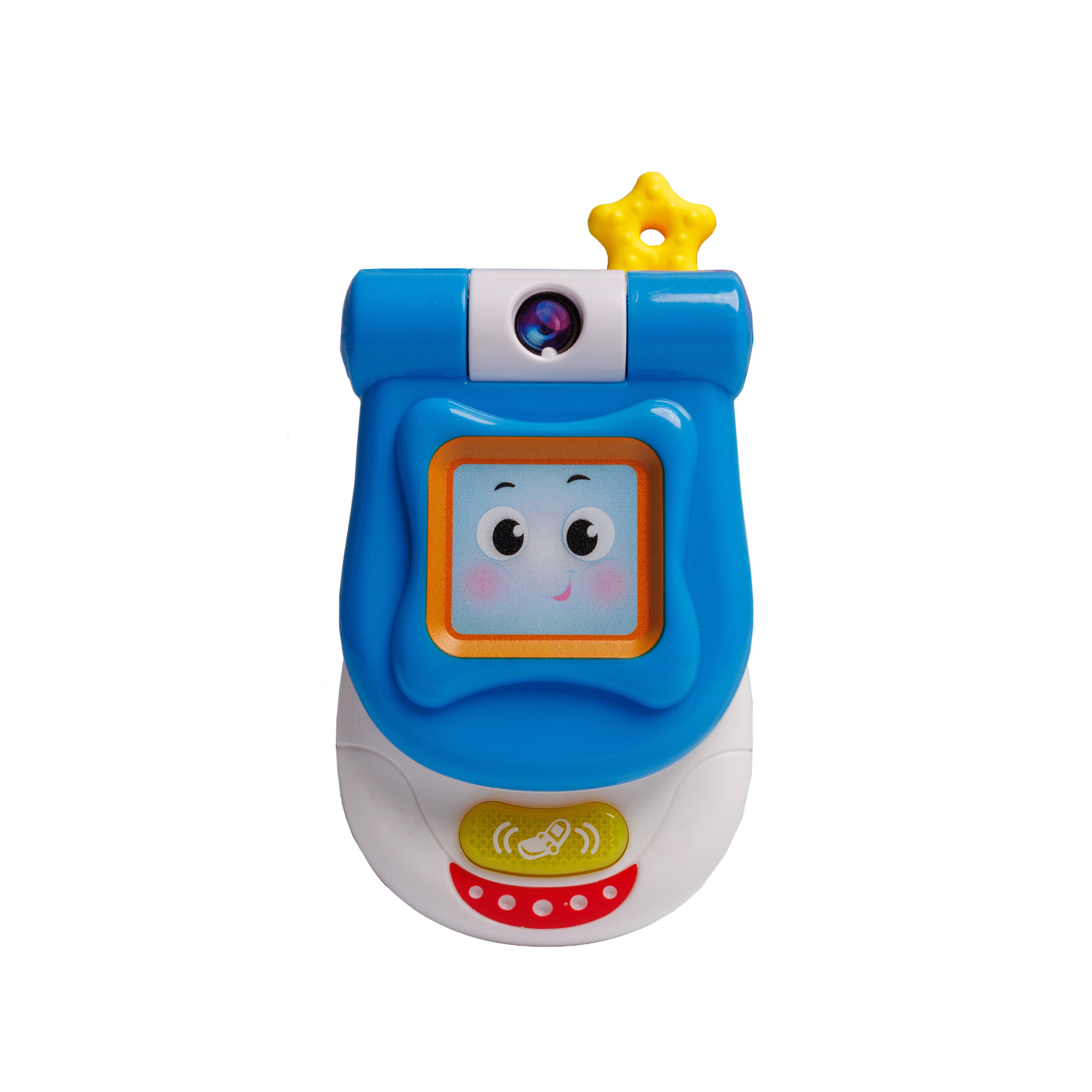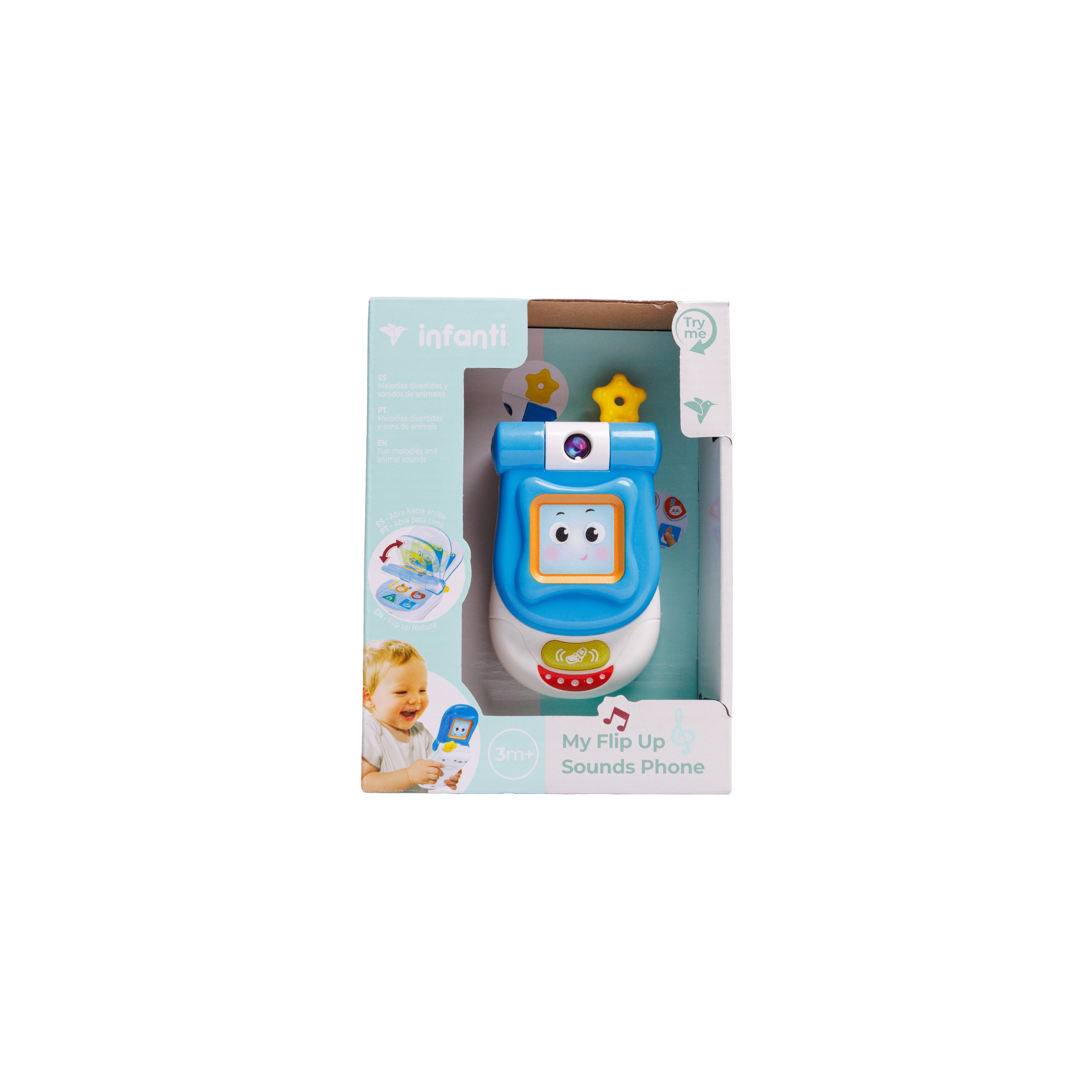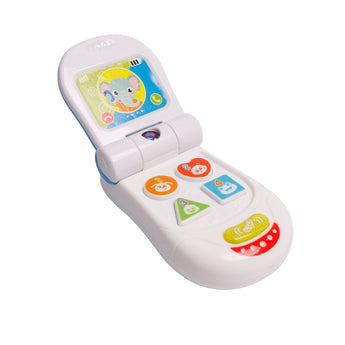 Teléfono plegable con sonidos y botones interactivos que estimulan comunicación, motricidad y percepción auditiva desde los 3 meses.