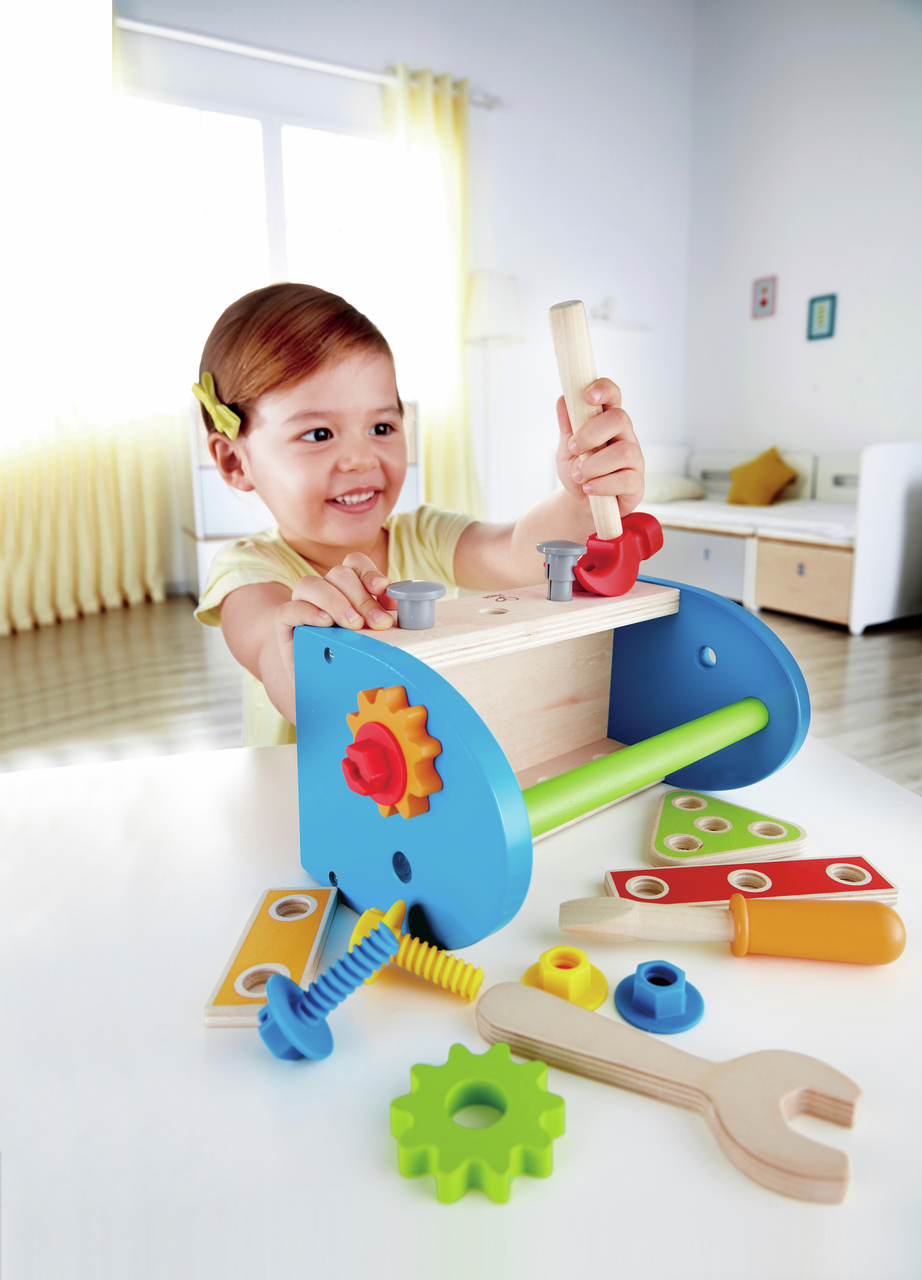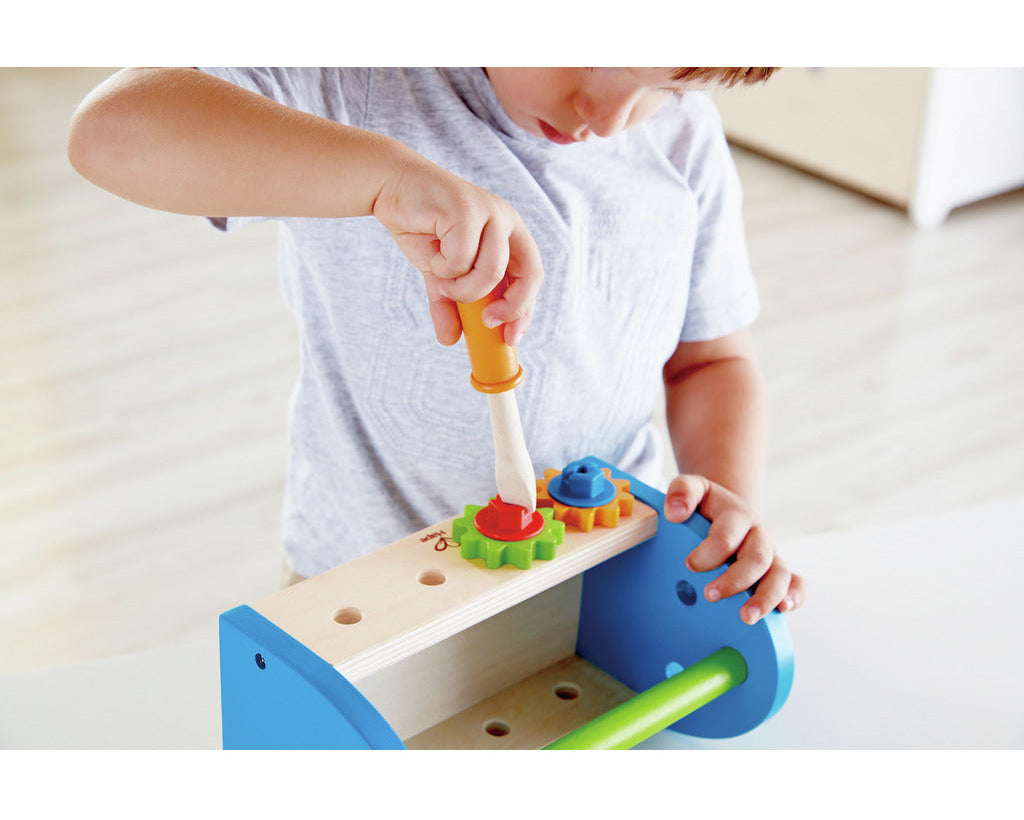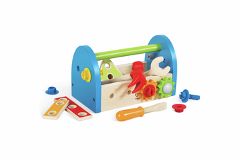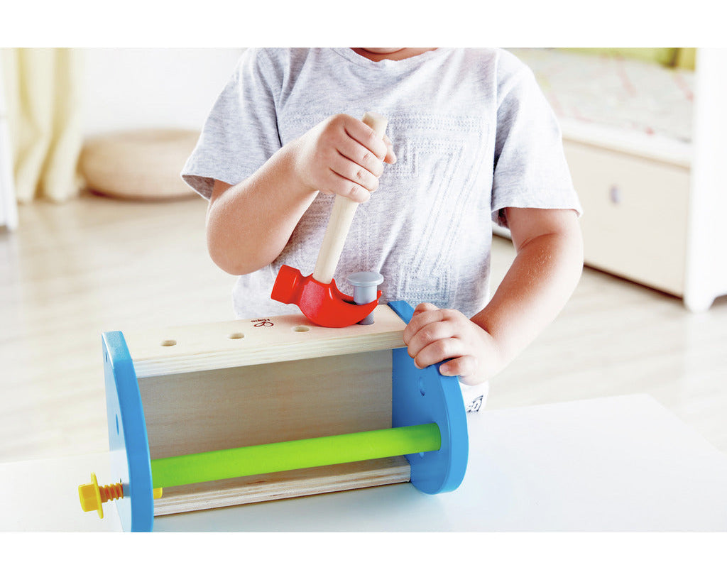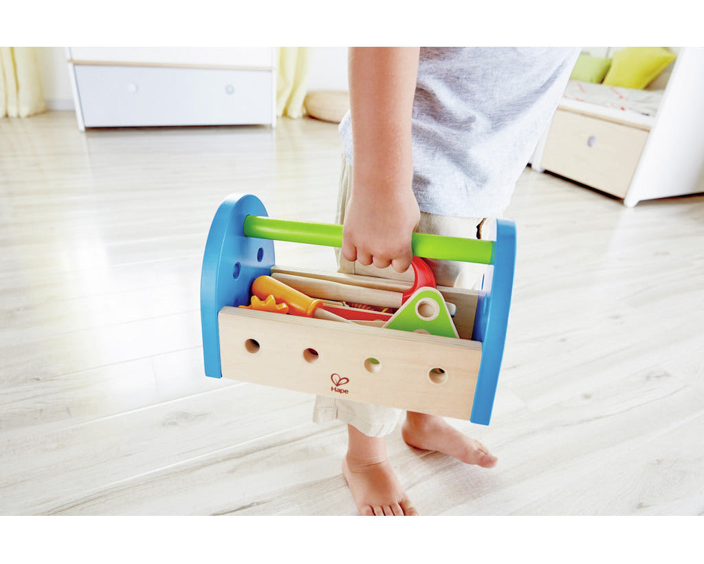 La Caja de Herramientas de Madera incluye tornillos, tuercas y herramientas resistentes para que los niños jueguen a construir, desarrollen habilidades motoras y aprendan a resolver problemas mientras simulan situaciones reales.