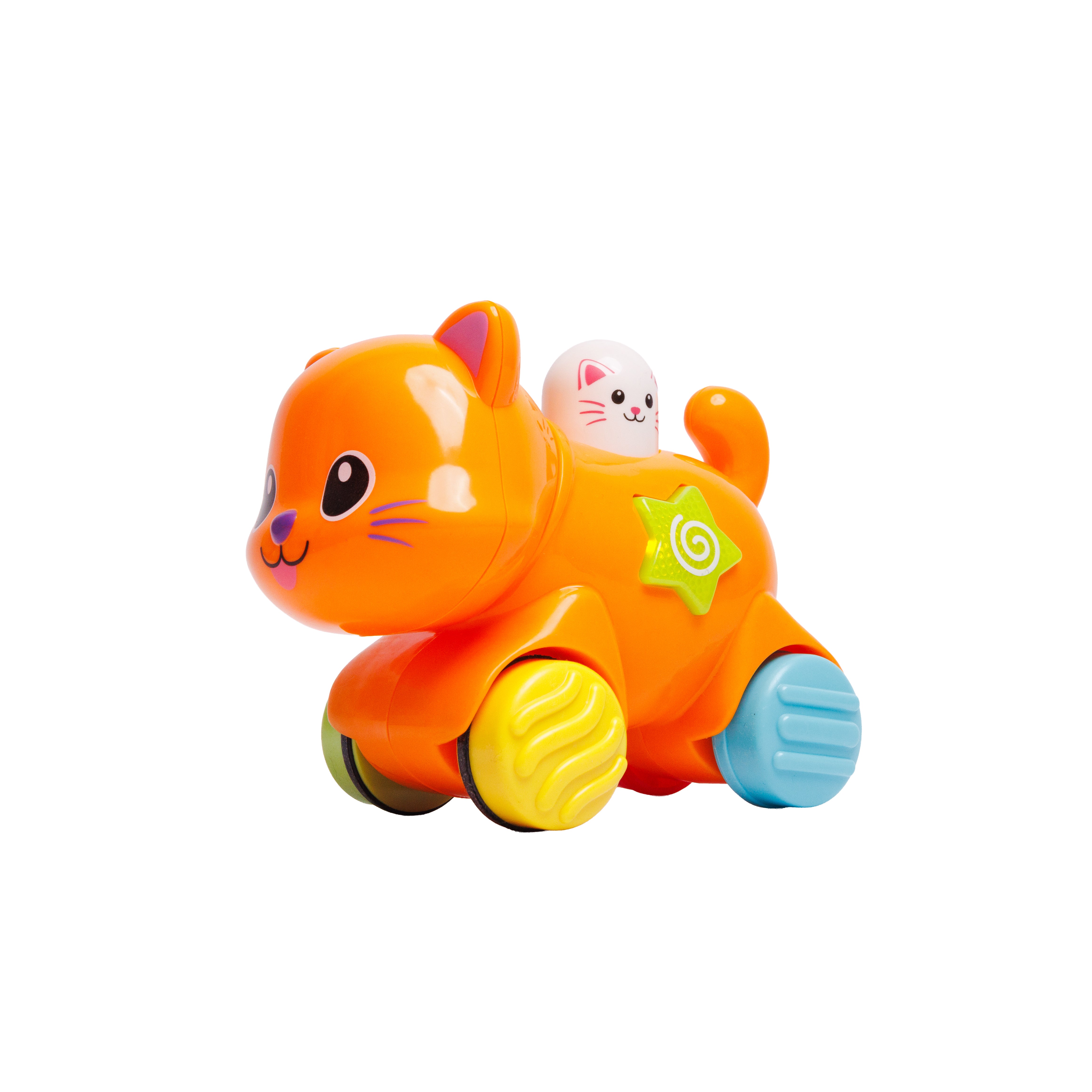 Presiona el botón para que ruede, mueva la cabeza y reproduzca sonidos divertidos
