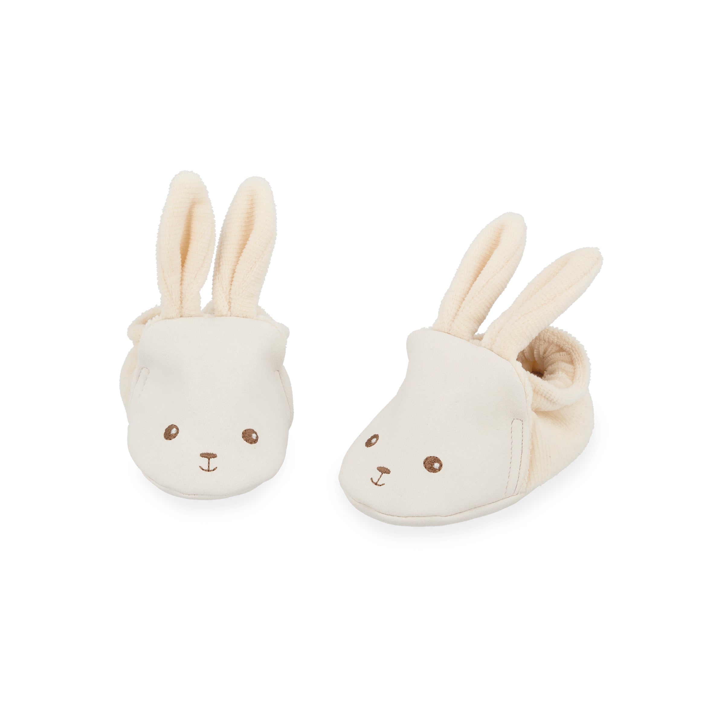 Set de regalo con doudou, mordedor y zapatitos en tonos crema, pensado para acompañar al bebé desde sus primeros días con suavidad, confort y practicidad.