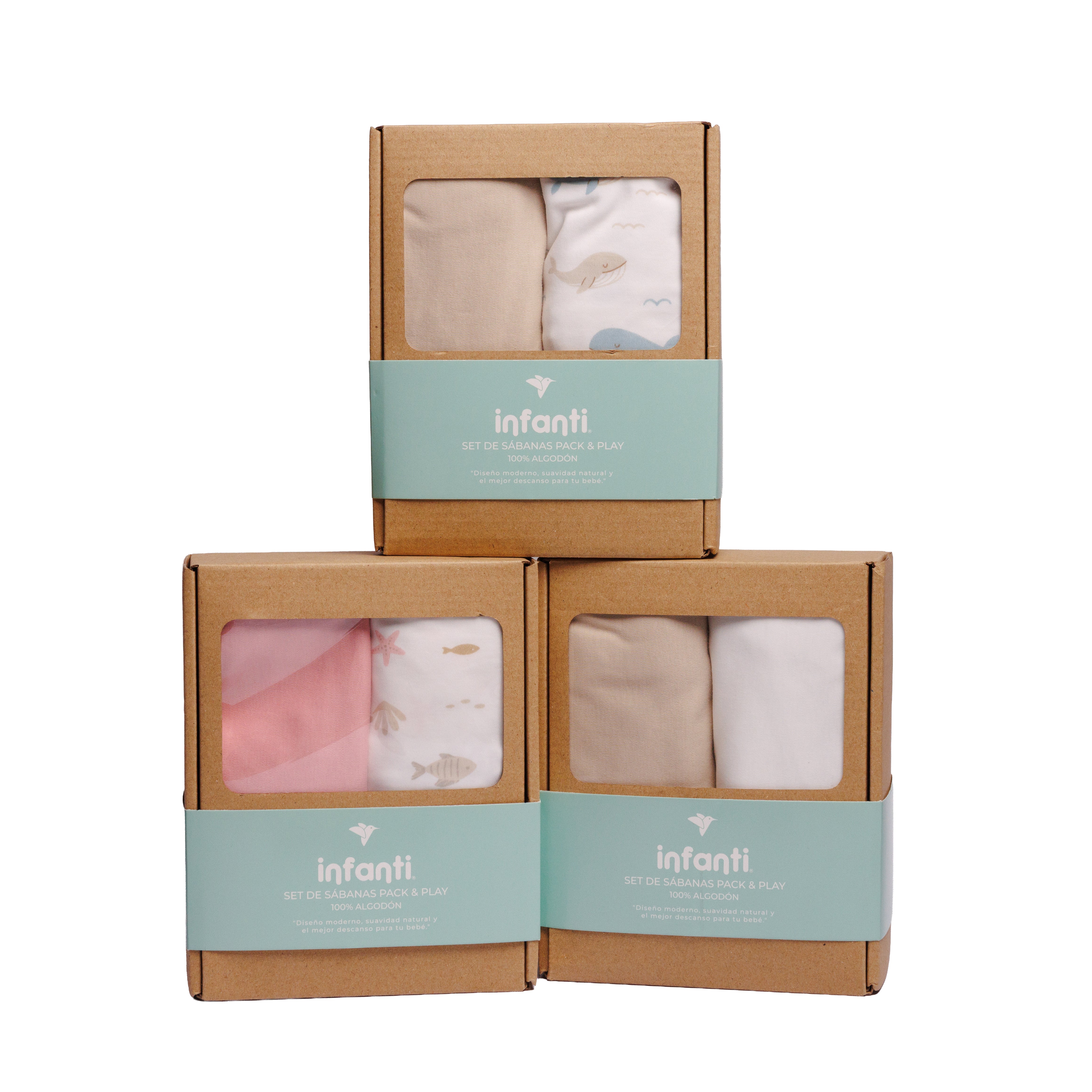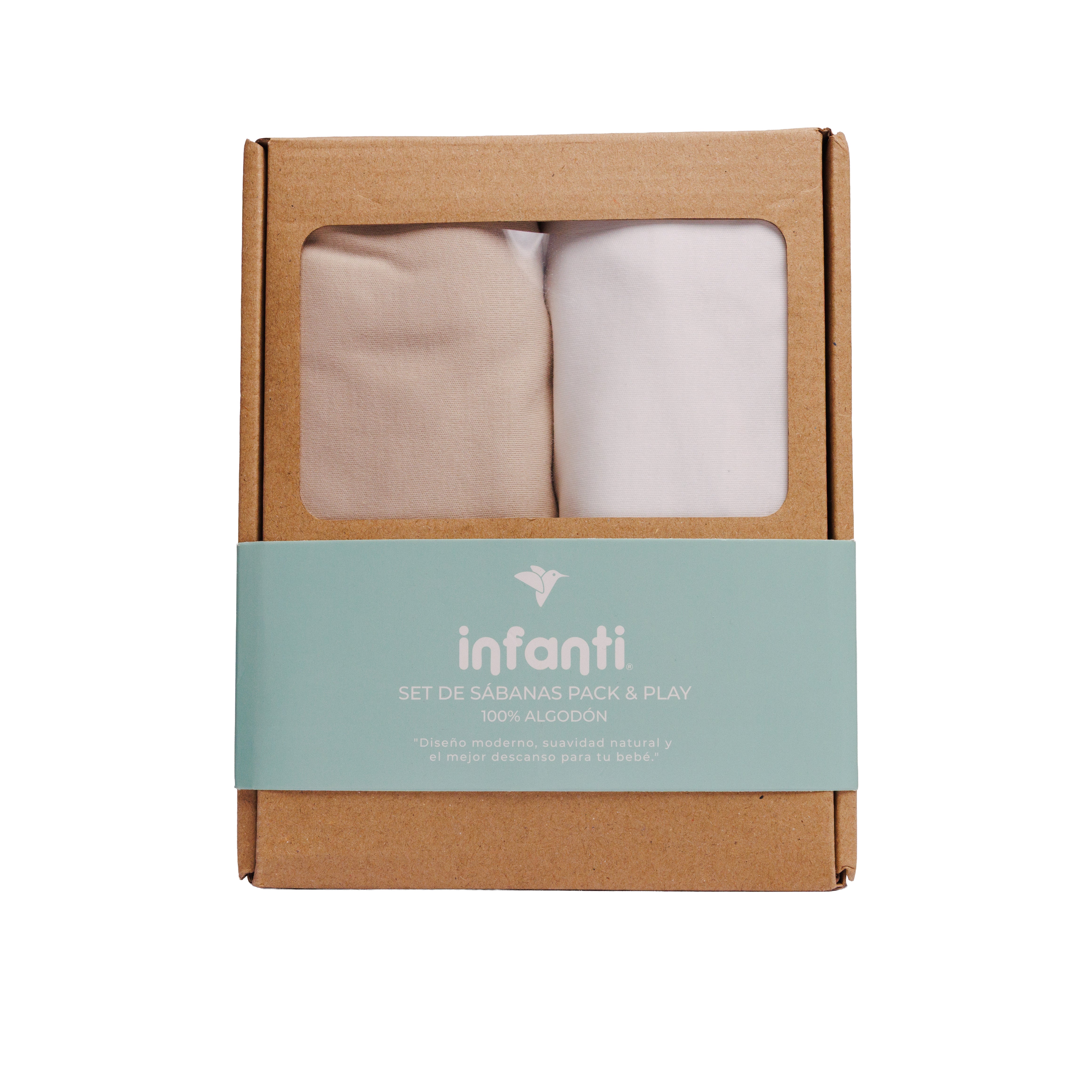 Pack x2 Sabanas Bajeras Pack & Play UTS Beige Papel/Blanco Cremoso